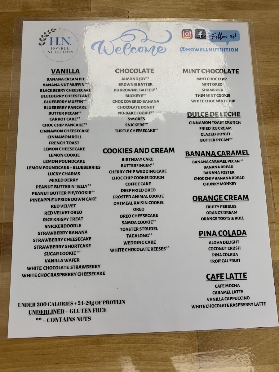 At Herbalife Howell Nutrition, the offerings range from indulgent protein smoothies to delectable healthy treats. You can savor rich flavors like the Banana Cream Pie, Chocolate Donut, and Oreo Cheesecake, which will make your taste buds dance with delight. Each item on the menu is designed to provide a delightful balance of taste and nutrition. For instance, the Peanut Butter N'Jelly shake is a nostalgic favorite, seamlessly combining the comforting flavor of peanut butter with the sweetness of jelly. Not to forget the delightful Blueberry Pancakes, which evoke feelings of warmth and home-cooked goodness!